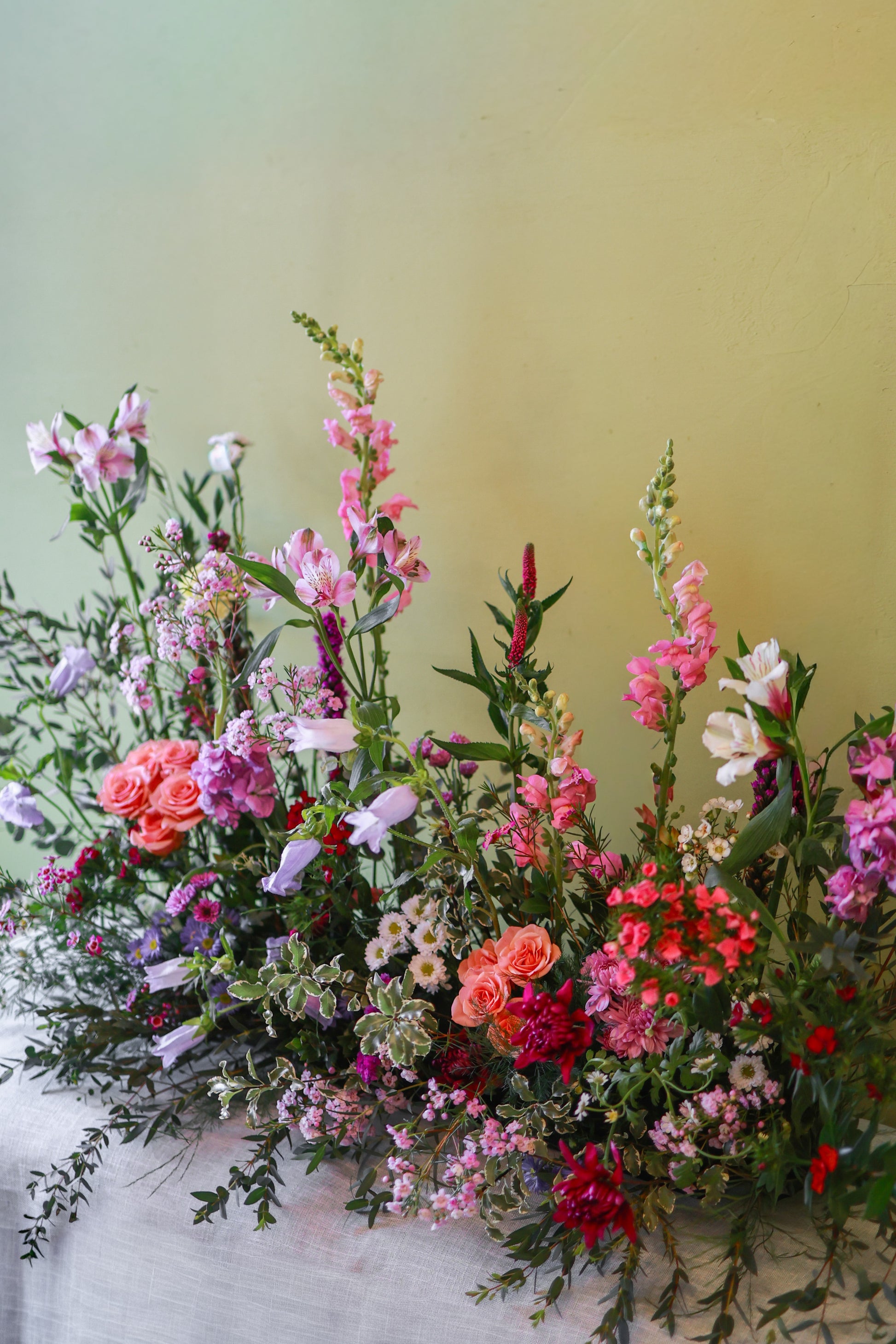 The ultimate garden arrangement designed for the moment that matters most. Created for a table, entry, or gathering in a low, long container— made to honor something big and sent with all your heart.